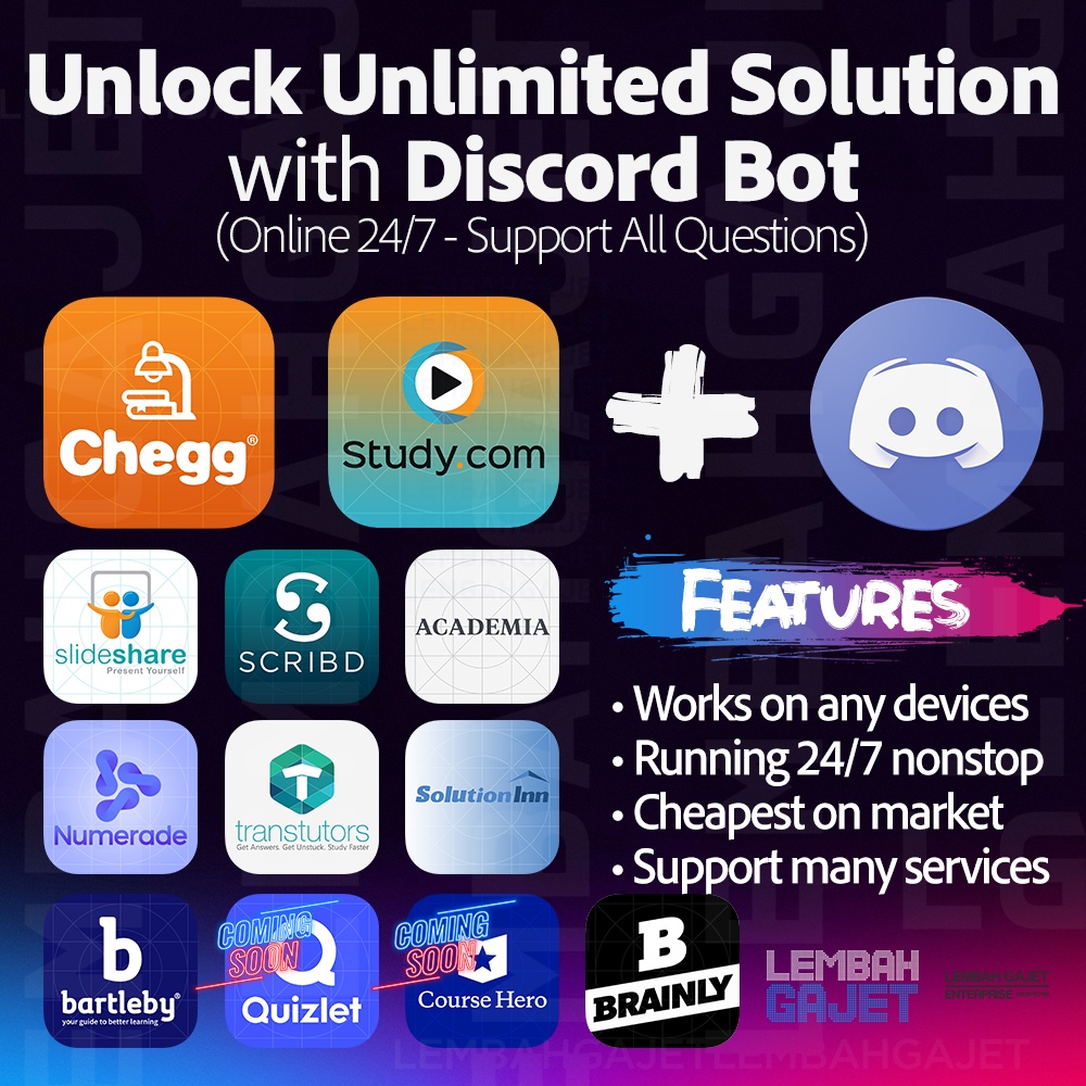 All In One Chegg Course Hero Bartleby Scribd Unlock 24 7 Discord Bot Home Services On Carousell